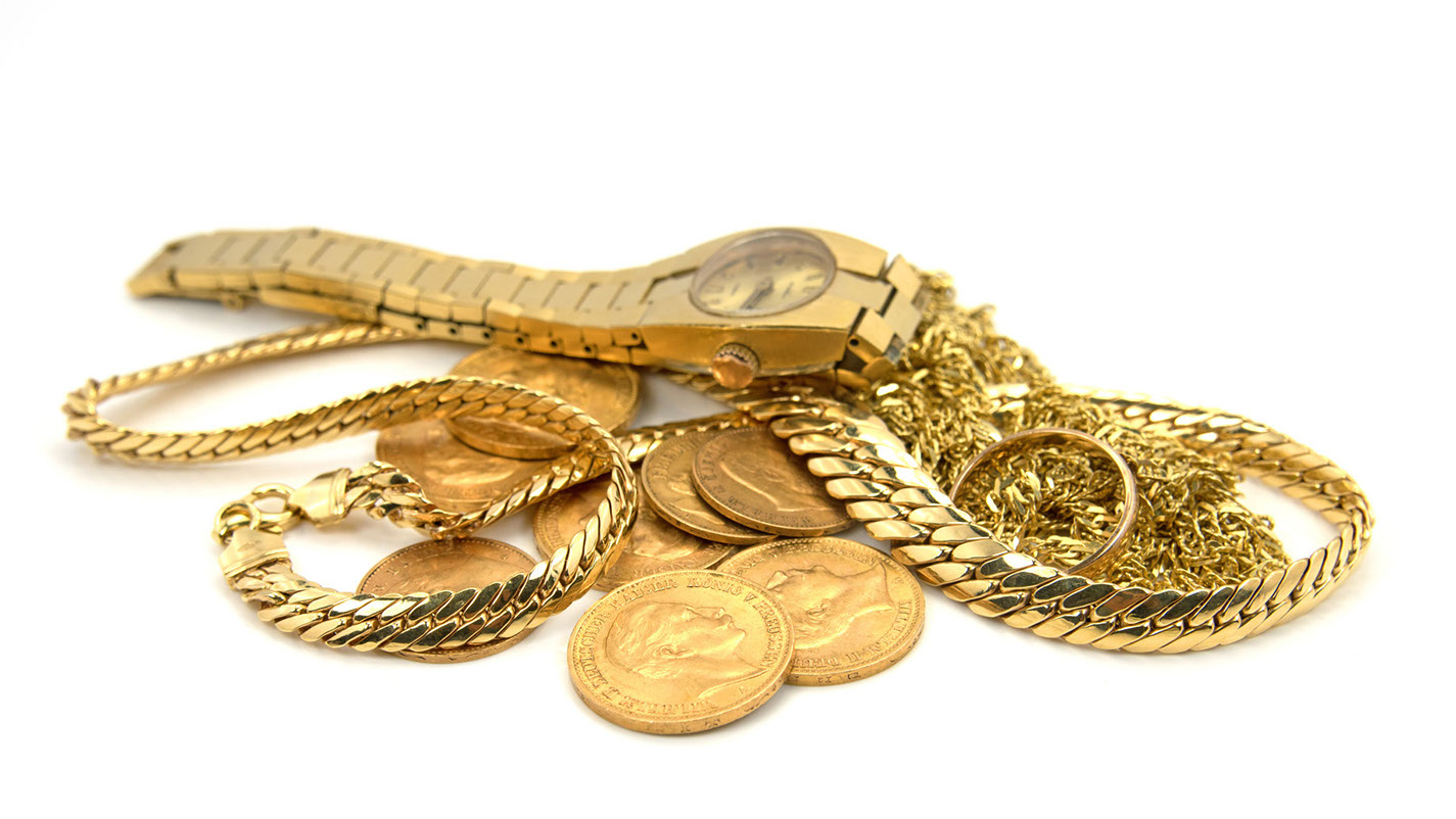 Goldschmuck, Brillantschmuck, alter Modeschmuck, Münzen, Perlenketten